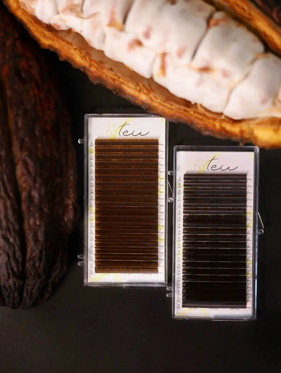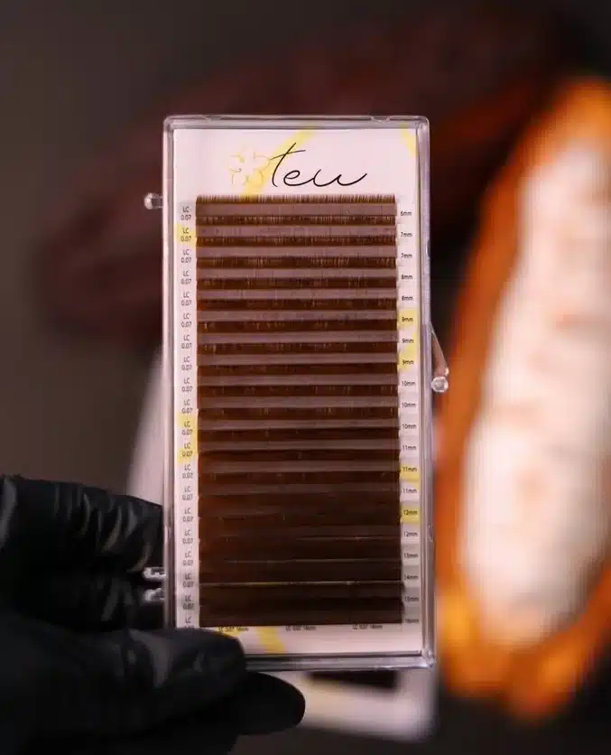 Стрічка жовтого кольору, з липкою основою, що дозволяє швидко знімати вії та зберігати клейкість при повторному використанні. На ній розташована вся необхідна інформація про вії: товщина, довжина, вигин.